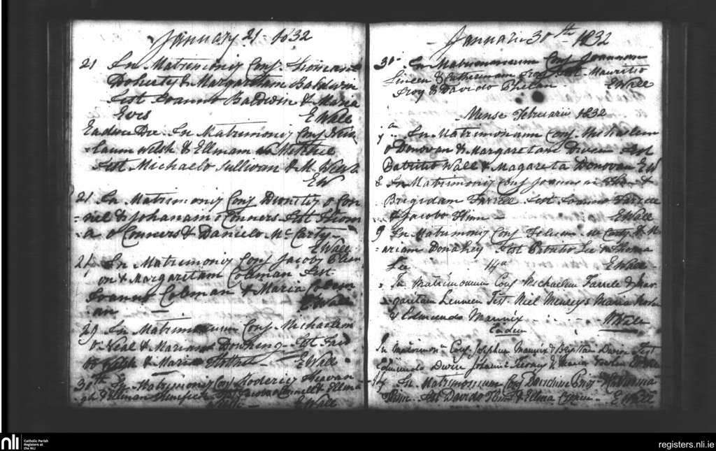 Lismore; County of Cork, Waterford; Diocese of Waterford and Lismore. Marriages, Jan. 1832 to Feb. 1832