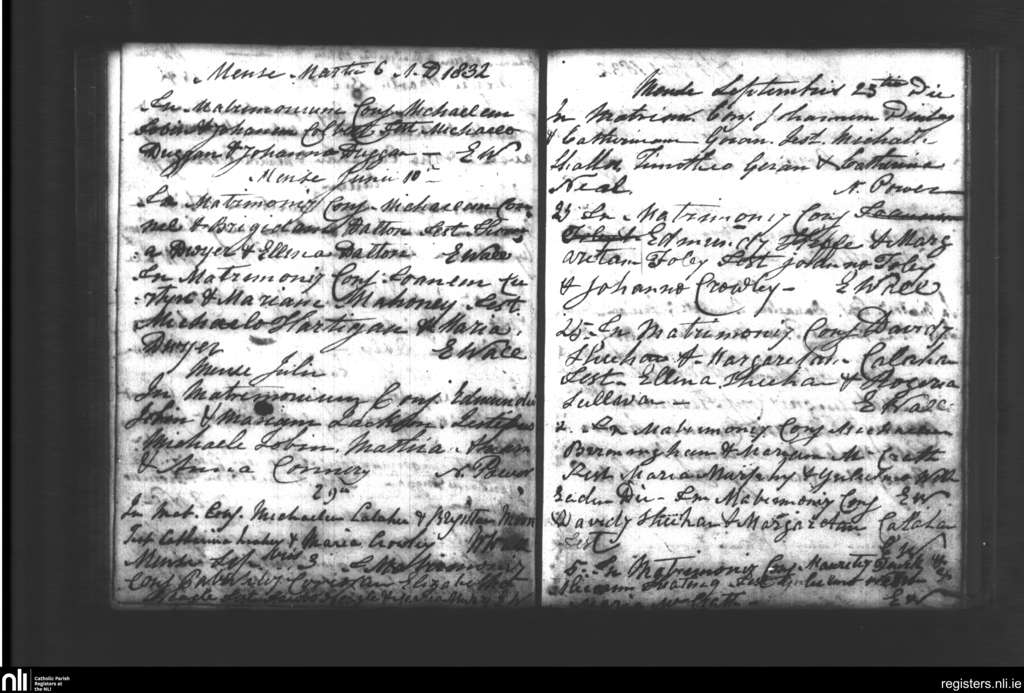 Lismore; County of Cork, Waterford; Diocese of Waterford and Lismore. Marriages, Mar. 1832 to Sep. 1832