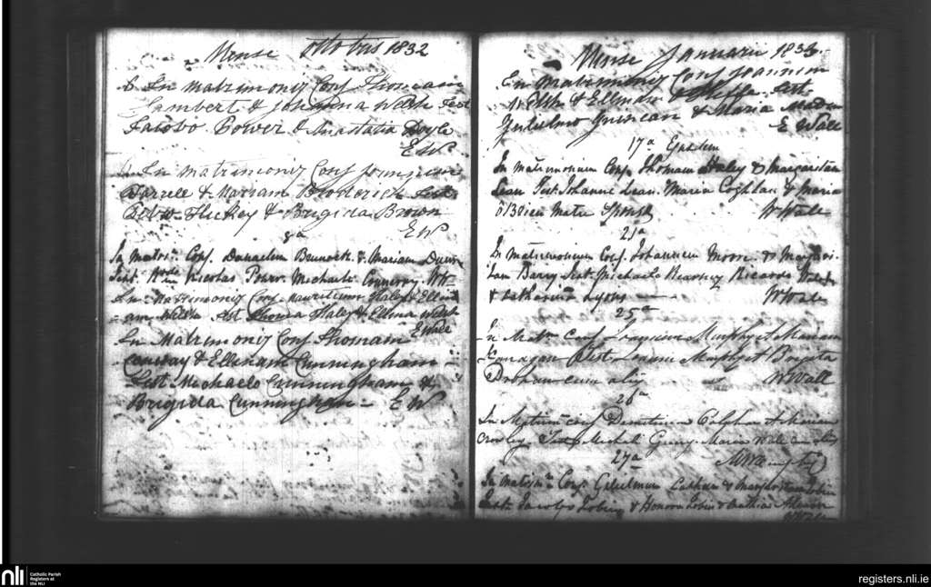Lismore; County of Cork, Waterford; Diocese of Waterford and Lismore. Marriages, Oct. 1832 to Jan. 1833
