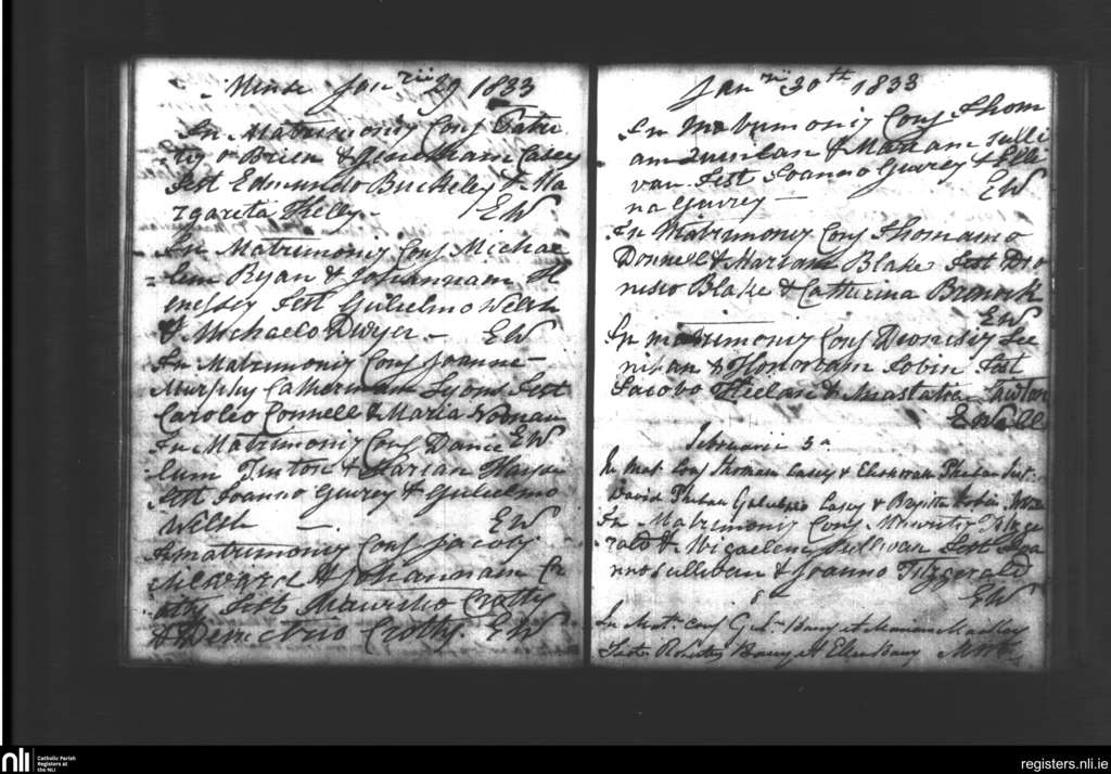 Lismore; County of Cork, Waterford; Diocese of Waterford and Lismore. Marriages, Jan. 1833 to Feb. 1833