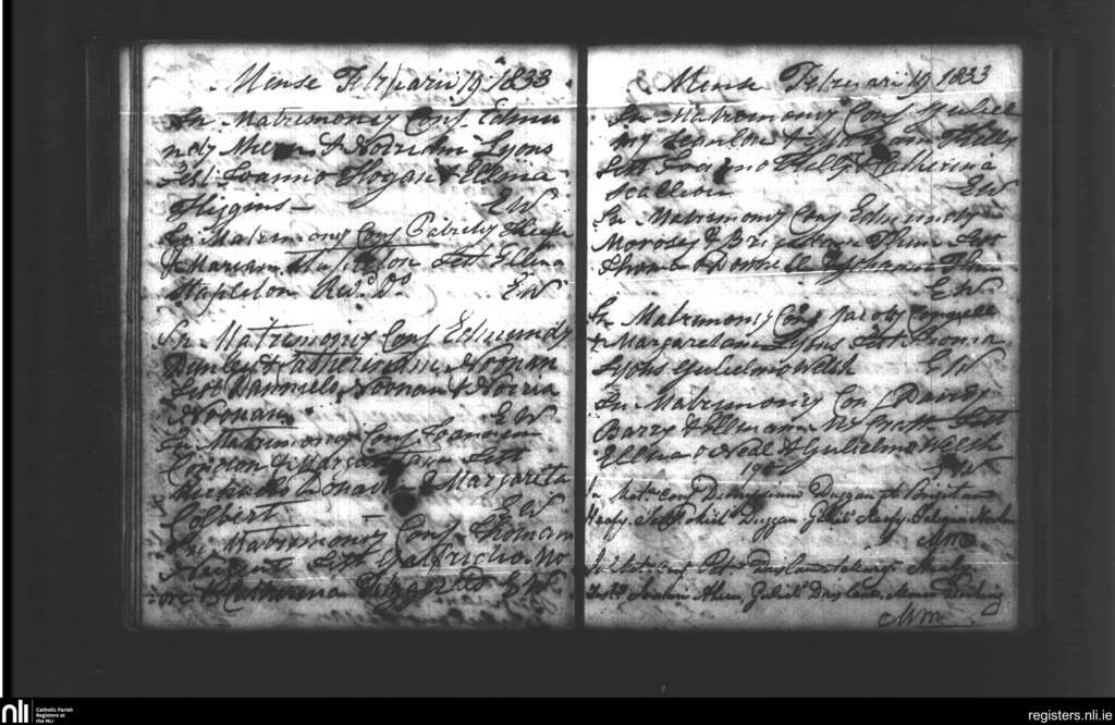 Lismore; County of Cork, Waterford; Diocese of Waterford and Lismore. Marriages, Feb. 1833