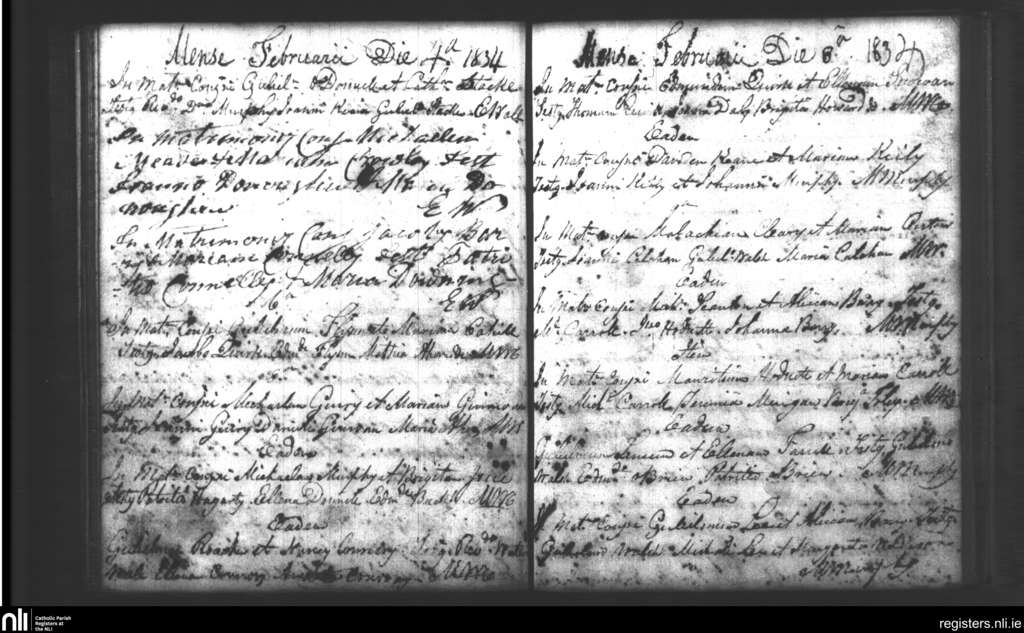 Lismore; County of Cork, Waterford; Diocese of Waterford and Lismore. Marriages, Feb. 1834