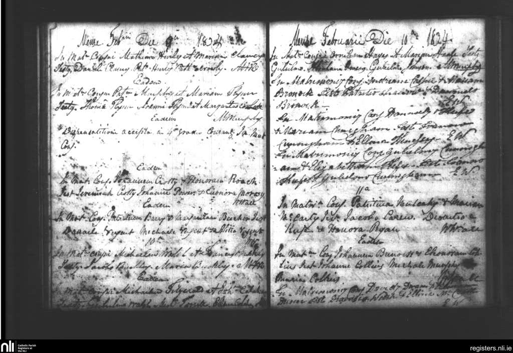 Lismore; County of Cork, Waterford; Diocese of Waterford and Lismore. Marriages, Feb. 1834