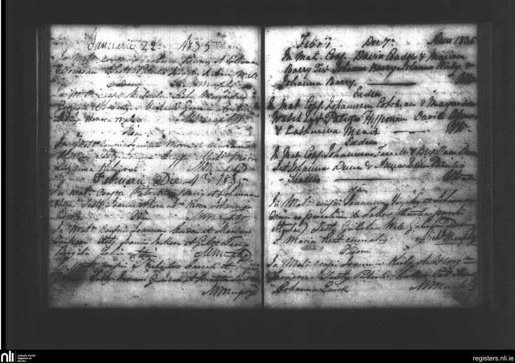 Lismore; County of Cork, Waterford; Diocese of Waterford and Lismore. Marriages, Jan. 1835 to Feb. 1835