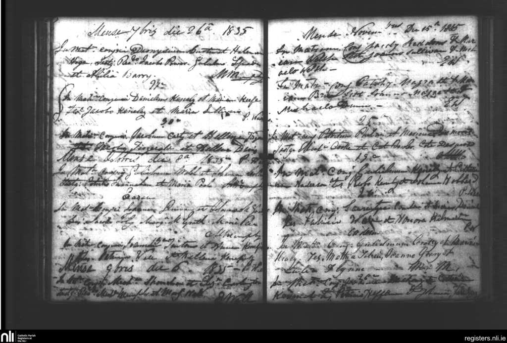 Lismore; County of Cork, Waterford; Diocese of Waterford and Lismore. Marriages, Sep. 1835 to Nov. 1835