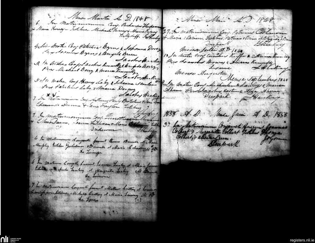 Lismore; County of Cork, Waterford; Diocese of Waterford and Lismore. Marriages, Mar. 1848 to June 1858