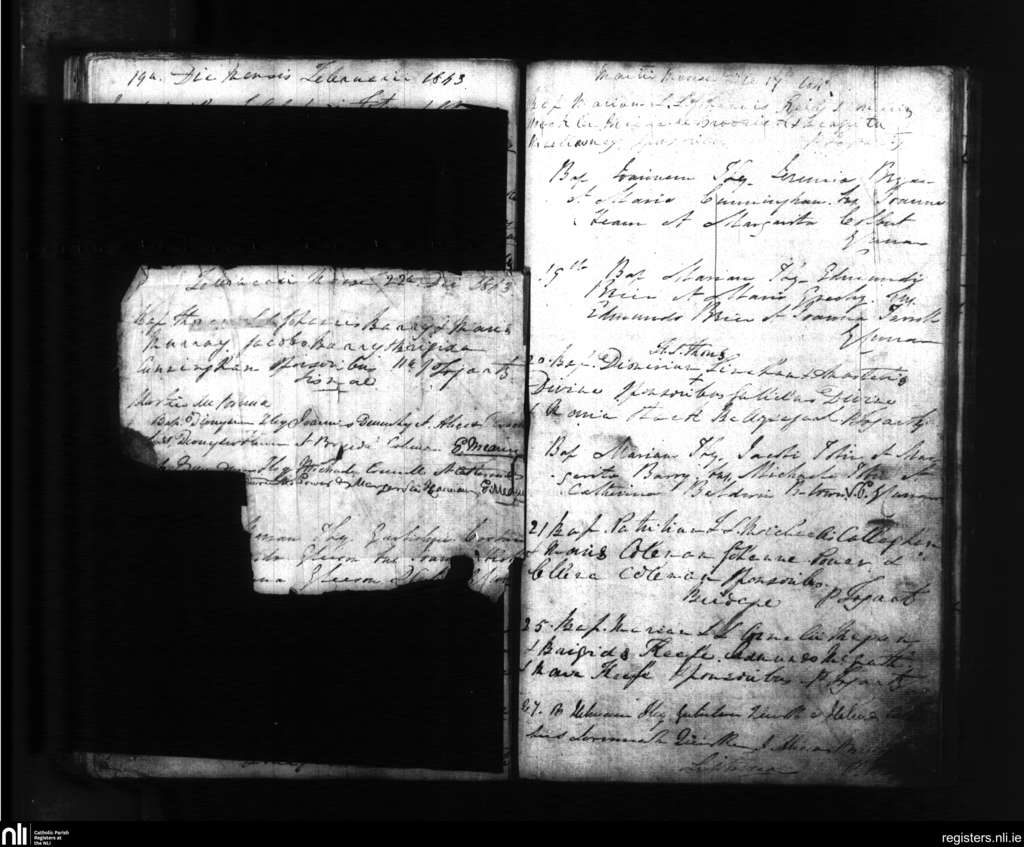 Lismore; County of Cork, Waterford; Diocese of Waterford and Lismore. Baptisms, Feb. 1843 to Mar. 1843