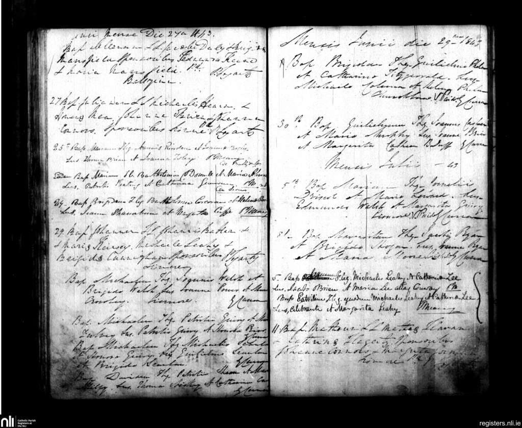 Lismore; County of Cork, Waterford; Diocese of Waterford and Lismore. Baptisms, June 1843 to July 1843