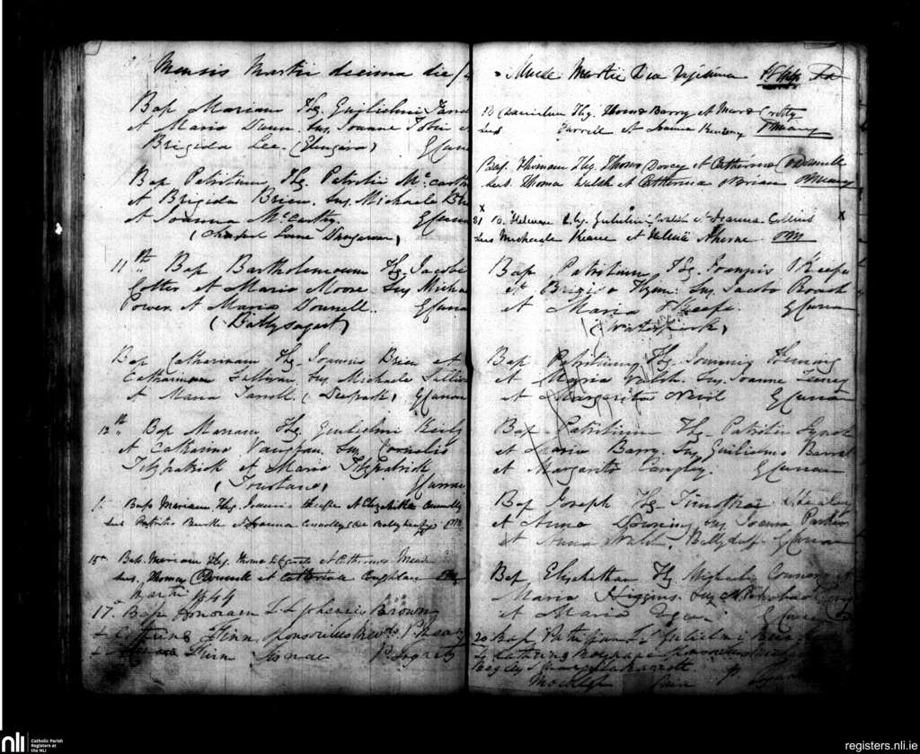 Lismore; County of Cork, Waterford; Diocese of Waterford and Lismore. Baptisms, Mar. 1844