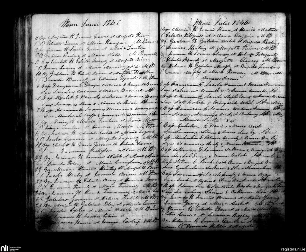Lismore; County of Cork, Waterford; Diocese of Waterford and Lismore. Baptisms, June 1846 to July 1846