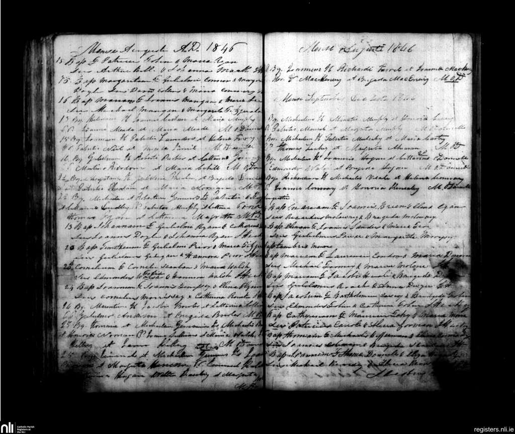 Lismore; County of Cork, Waterford; Diocese of Waterford and Lismore. Baptisms, Aug. 1846 to Sep. 1846