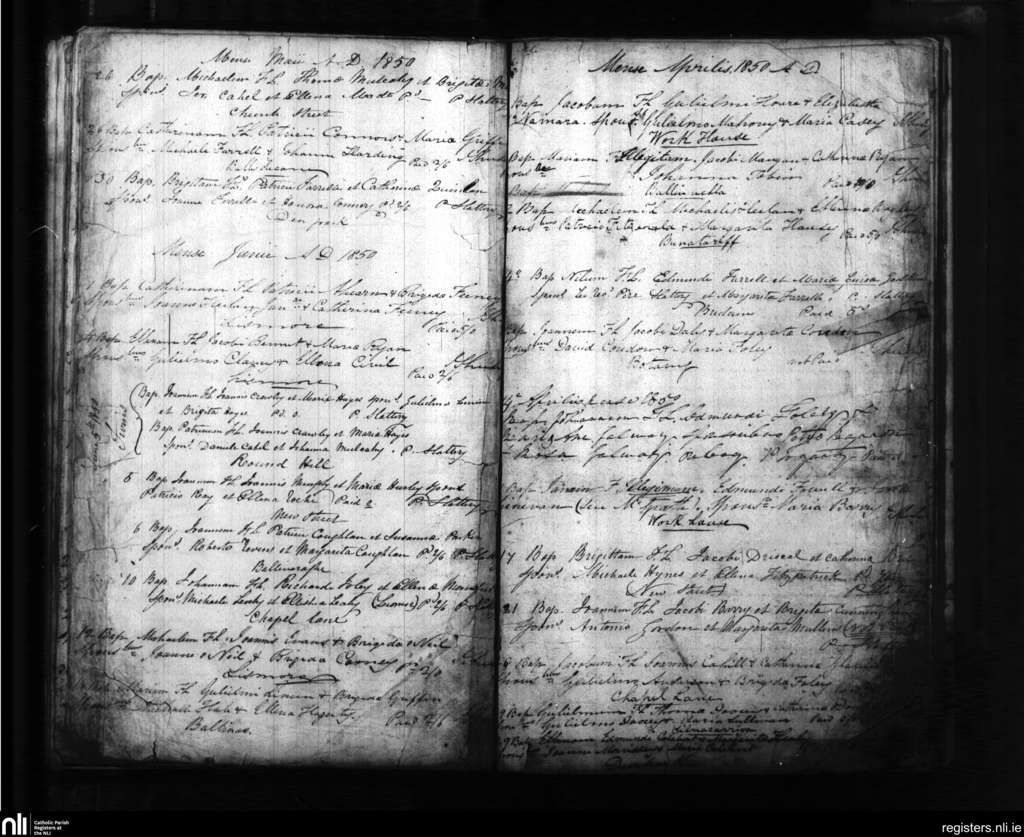 Lismore; County of Waterford, Cork; Diocese of Waterford and Lismore. Baptisms, Apr. 1850 to June 1850