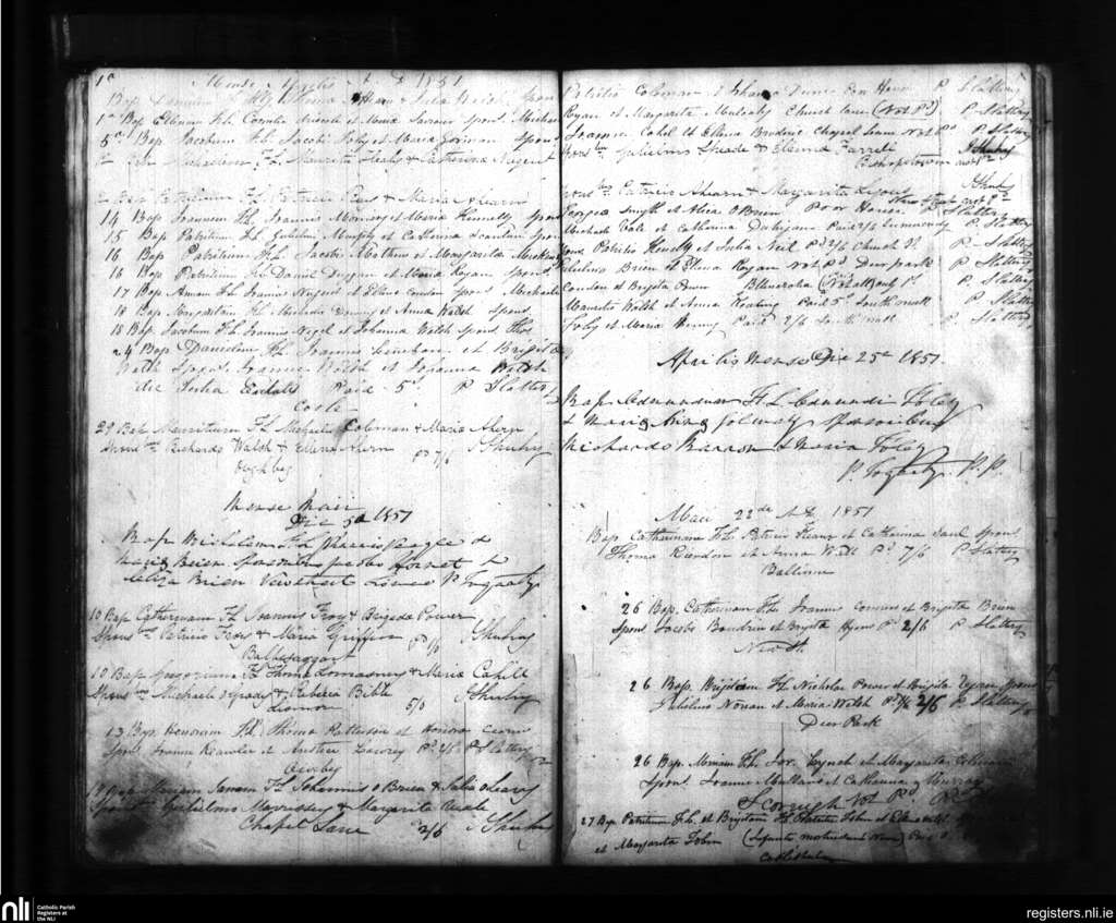 Lismore; County of Waterford, Cork; Diocese of Waterford and Lismore. Baptisms, Apr. 1851 to May 1851