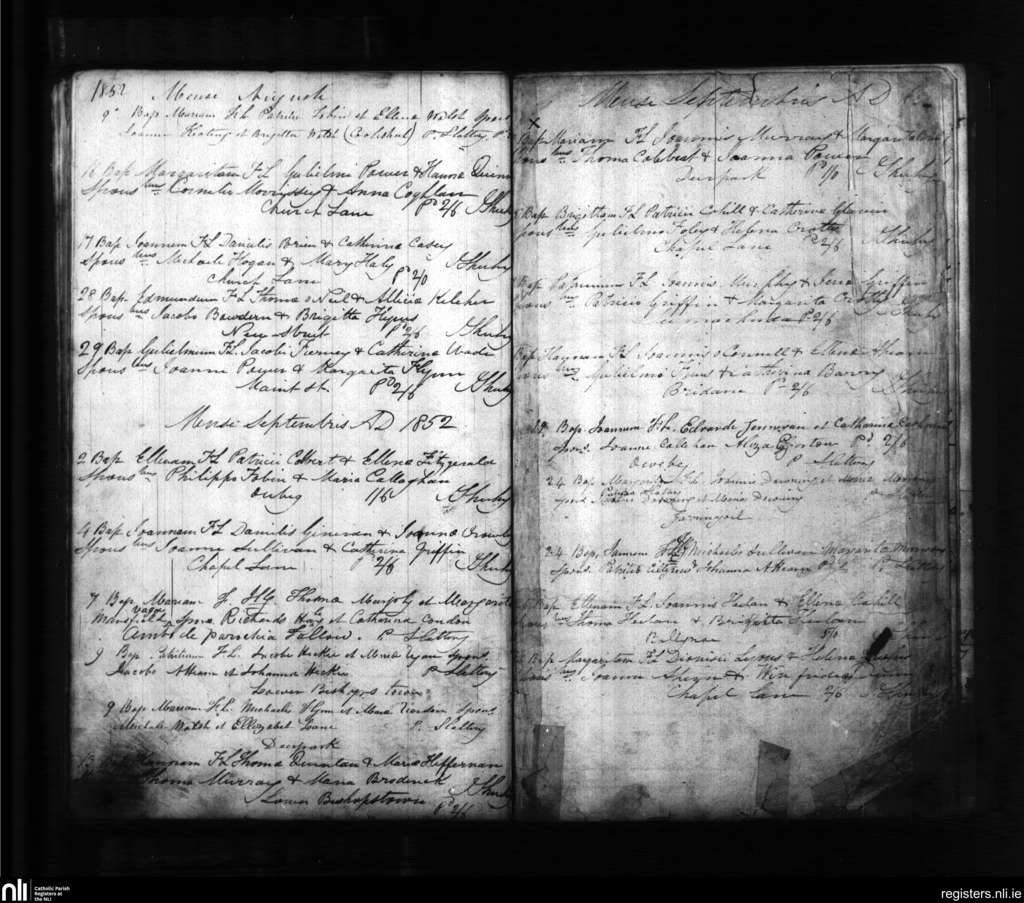 Lismore; County of Waterford, Cork; Diocese of Waterford and Lismore. Baptisms, Aug. 1852 to Sep. 1852