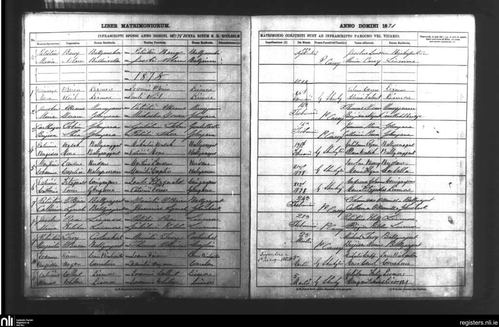 Lismore; County of Cork, Waterford; Diocese of Waterford and Lismore. Marriages, Sep. 1877 to Mar. 1878