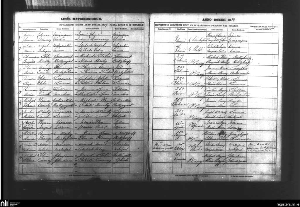 Lismore; County of Cork, Waterford; Diocese of Waterford and Lismore. Marriages, Feb. 1879 to Nov. 1879