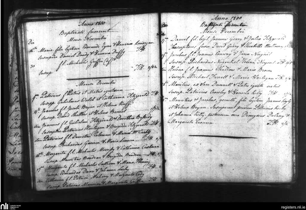Tallow; County of Waterford; Diocese of Waterford and Lismore. Baptisms, Nov. 1800 to Dec. 1800