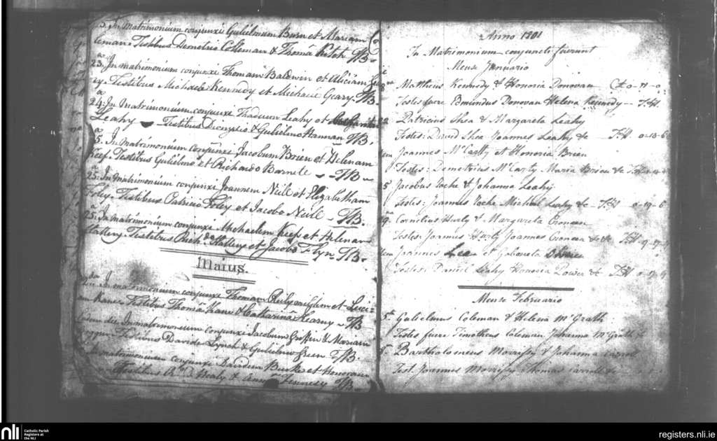 Tallow; County of Waterford; Diocese of Waterford and Lismore. Marriages, Apr. 1799 to Feb. 1801