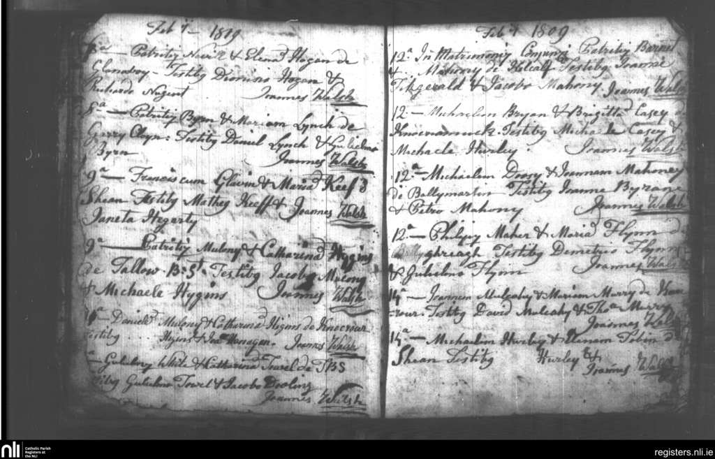 Tallow; County of Waterford; Diocese of Waterford and Lismore. Marriages, Feb. 1809