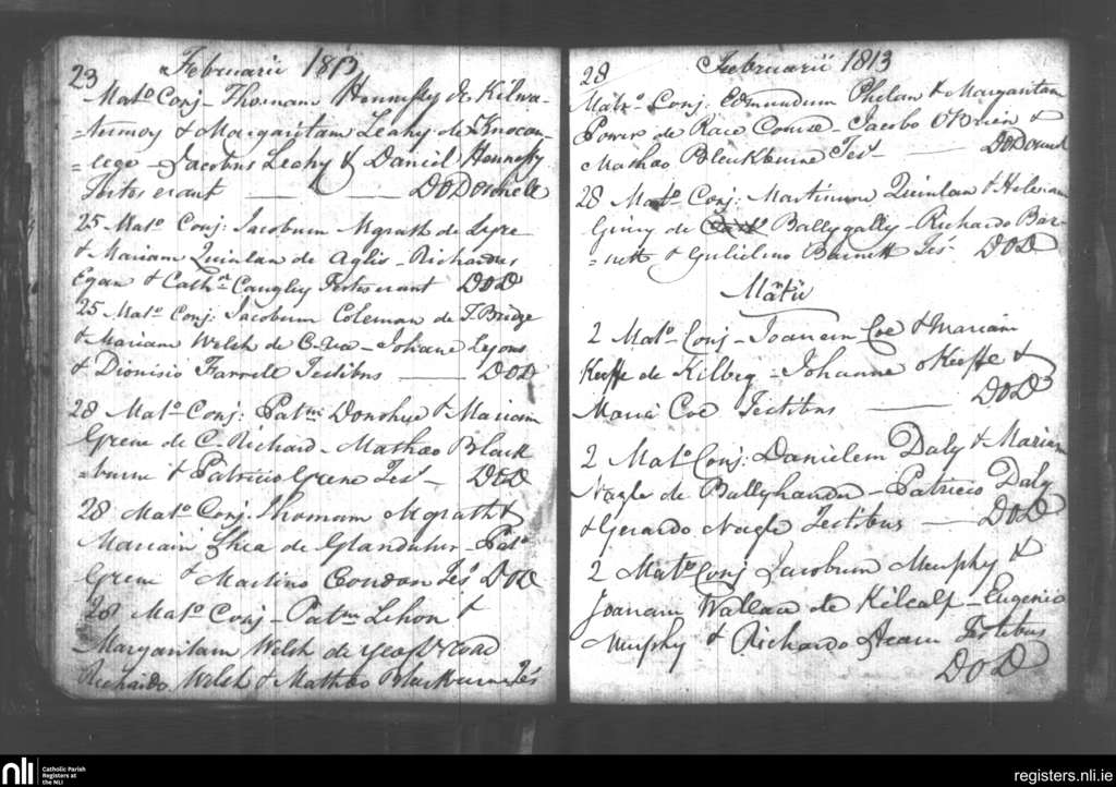 Tallow; County of Waterford; Diocese of Waterford and Lismore. Marriages, Feb. 1813 to Mar. 1813