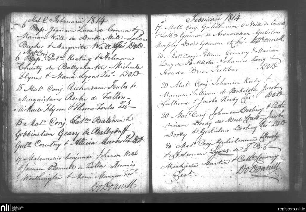 Tallow; County of Waterford; Diocese of Waterford and Lismore. Marriages, Feb. 1814