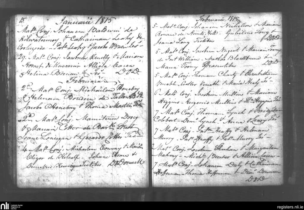 Tallow; County of Waterford; Diocese of Waterford and Lismore. Marriages, Jan. 1815 to Feb. 1815