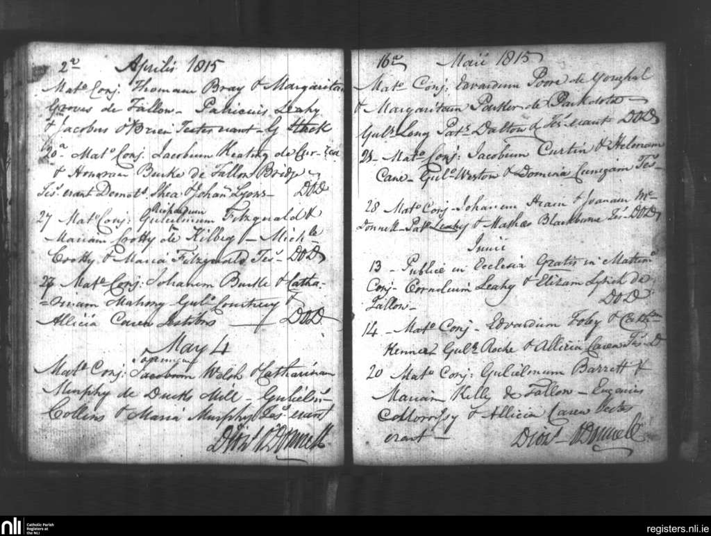 Tallow; County of Waterford; Diocese of Waterford and Lismore. Marriages, Apr. 1815 to June 1815
