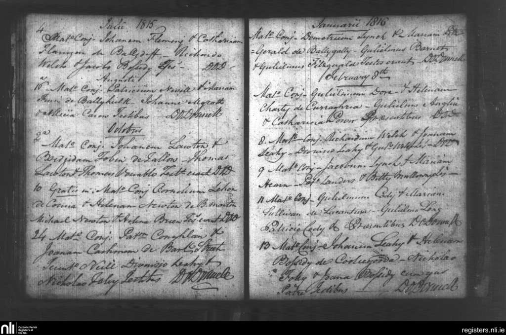Tallow; County of Waterford; Diocese of Waterford and Lismore. Marriages, July 1815 to Feb. 1816