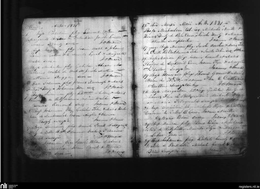 Tallow; County of Waterford; Diocese of Waterford and Lismore. Baptisms, May 1831