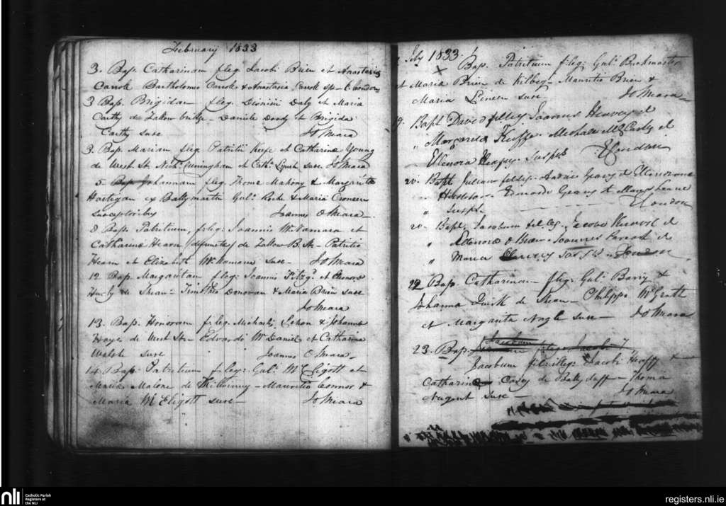 Tallow; County of Waterford; Diocese of Waterford and Lismore. Baptisms, Feb. 1833