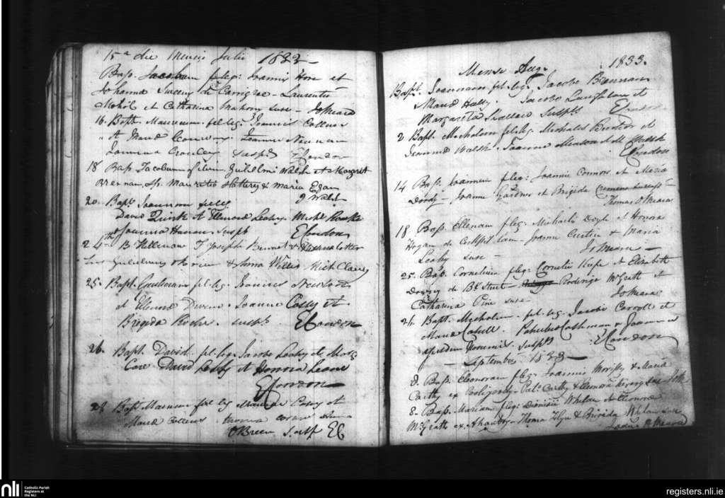 Tallow; County of Waterford; Diocese of Waterford and Lismore. Baptisms, July 1833 to Sep. 1833