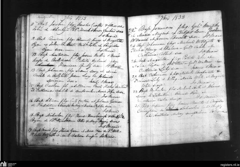 Tallow; County of Waterford; Diocese of Waterford and Lismore. Baptisms, Aug. 1833 to Sep. 1833