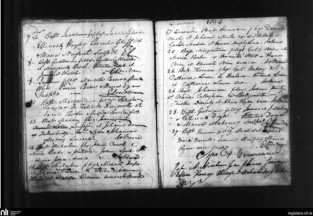 Tallow; County of Waterford; Diocese of Waterford and Lismore. Baptisms, Dec. 1834