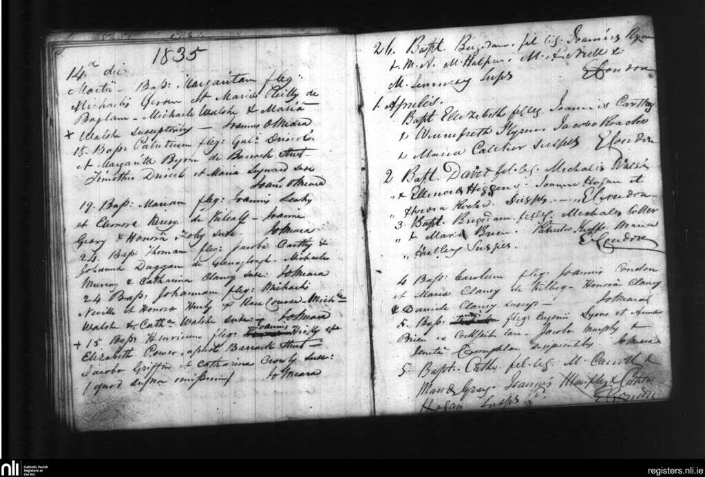 Tallow; County of Waterford; Diocese of Waterford and Lismore. Baptisms, Mar. 1835 to Apr. 1835