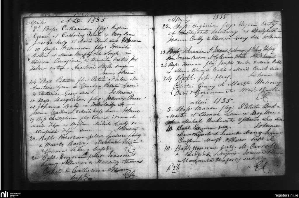 Tallow; County of Waterford; Diocese of Waterford and Lismore. Baptisms, Apr. 1835 to May 1835