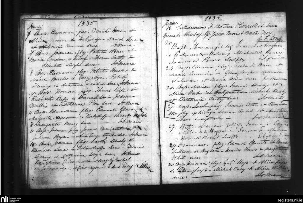 Tallow; County of Waterford; Diocese of Waterford and Lismore. Baptisms, June 1835