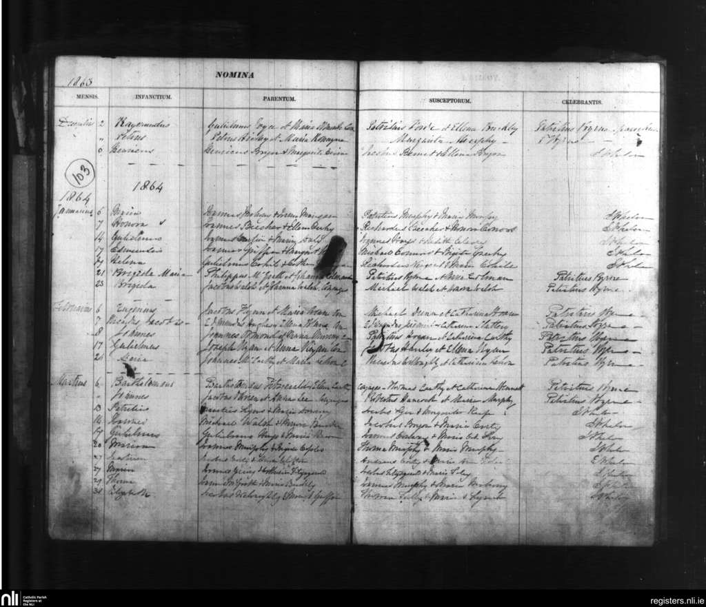 Tallow; County of Waterford; Diocese of Waterford and Lismore. Baptisms, Dec. 1863 to Mar. 1864