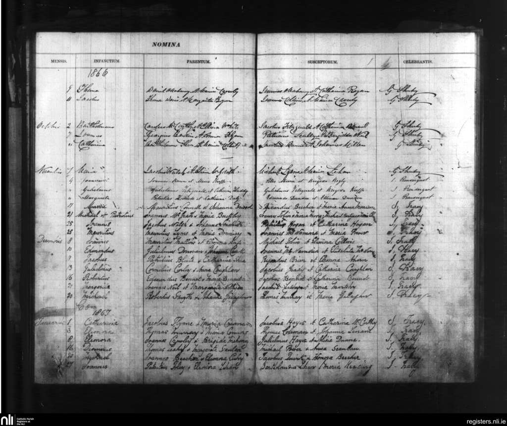 Tallow; County of Waterford; Diocese of Waterford and Lismore. Baptisms, Sep. 1866 to Jan. 1867