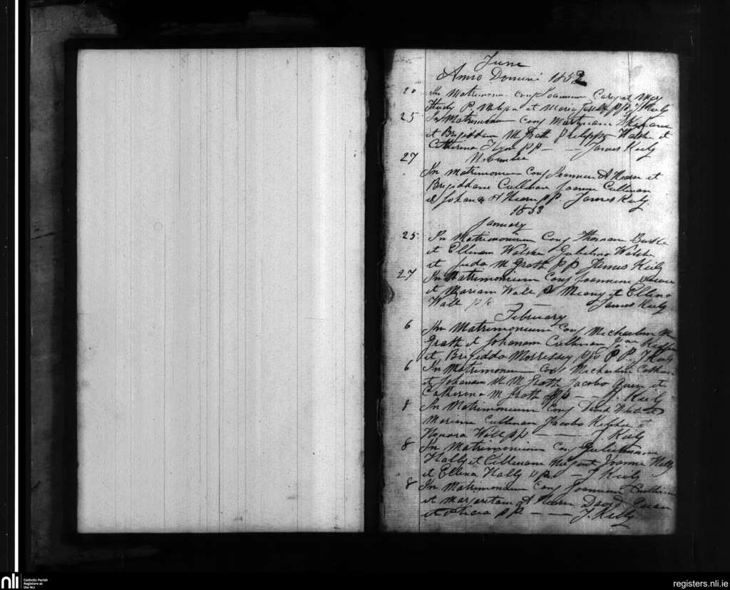 Touraneena; County of Waterford; Diocese of Waterford and Lismore. Marriages, June 1852 to Feb. 1853