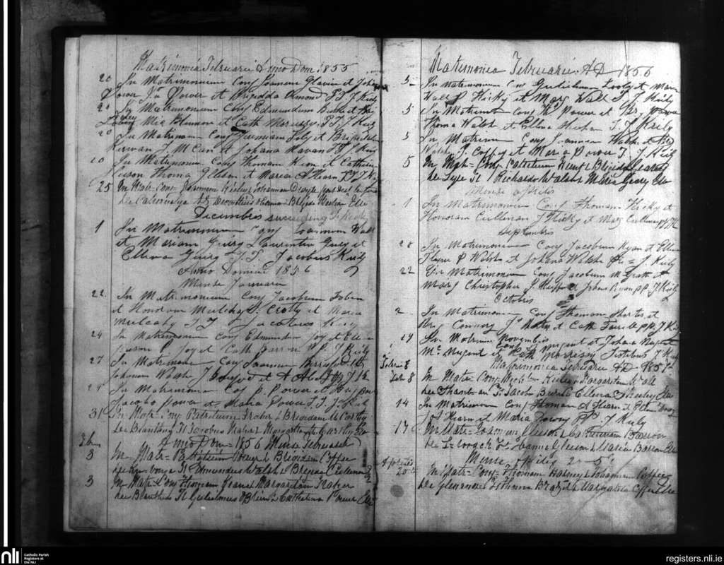 Touraneena; County of Waterford; Diocese of Waterford and Lismore. Marriages, Feb. 1855 to Apr. 1857