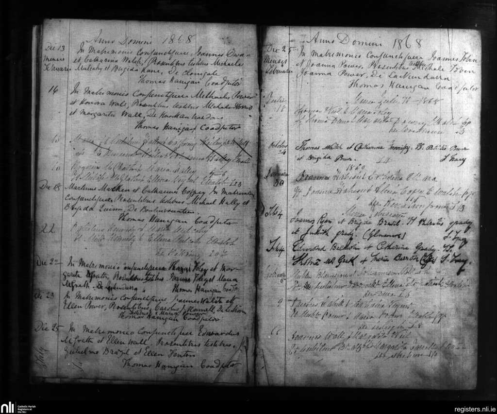 Touraneena; County of Waterford; Diocese of Waterford and Lismore. Marriages, Feb. 1868 to Feb. 1869