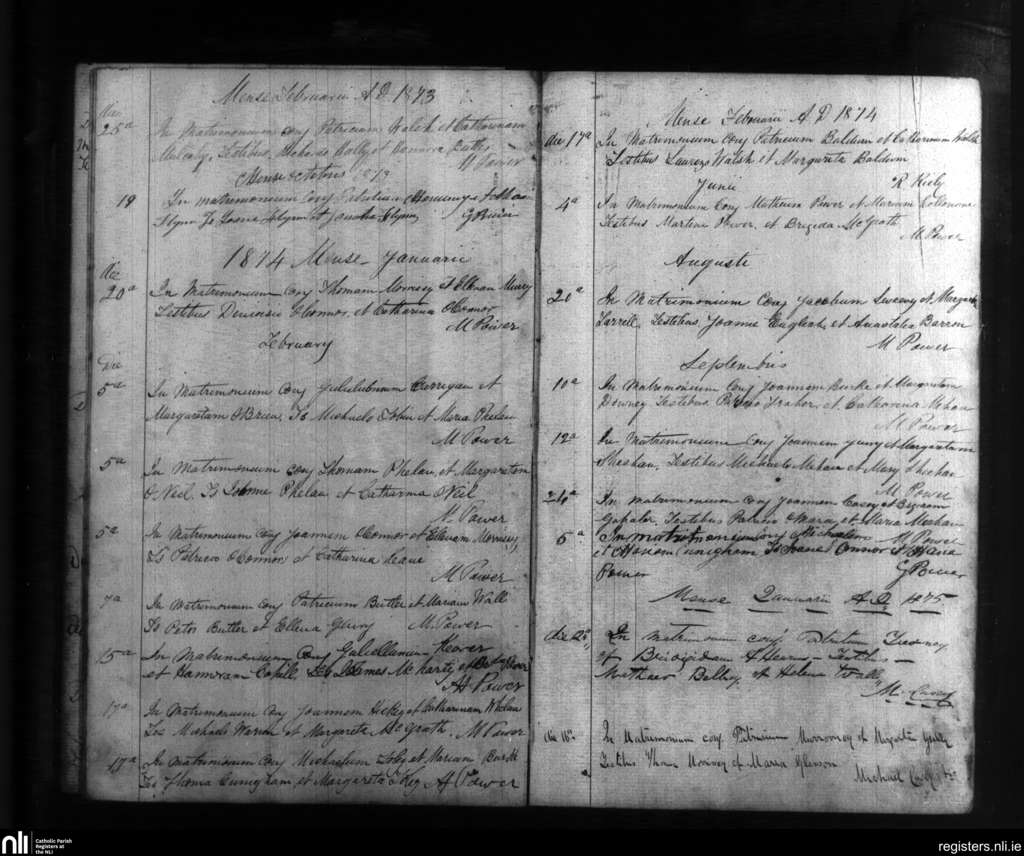 Touraneena; County of Waterford; Diocese of Waterford and Lismore. Marriages, Feb. 1873 to Jan. 1875