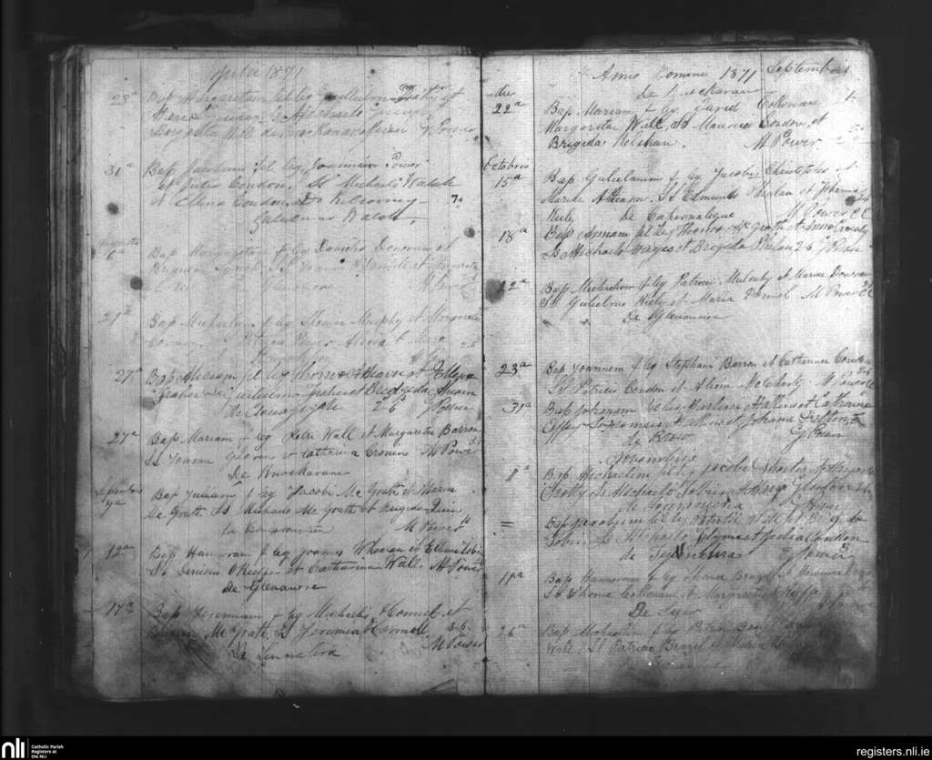 Touraneena; County of Waterford; Diocese of Waterford and Lismore. Baptisms, July 1871 to Nov. 1871