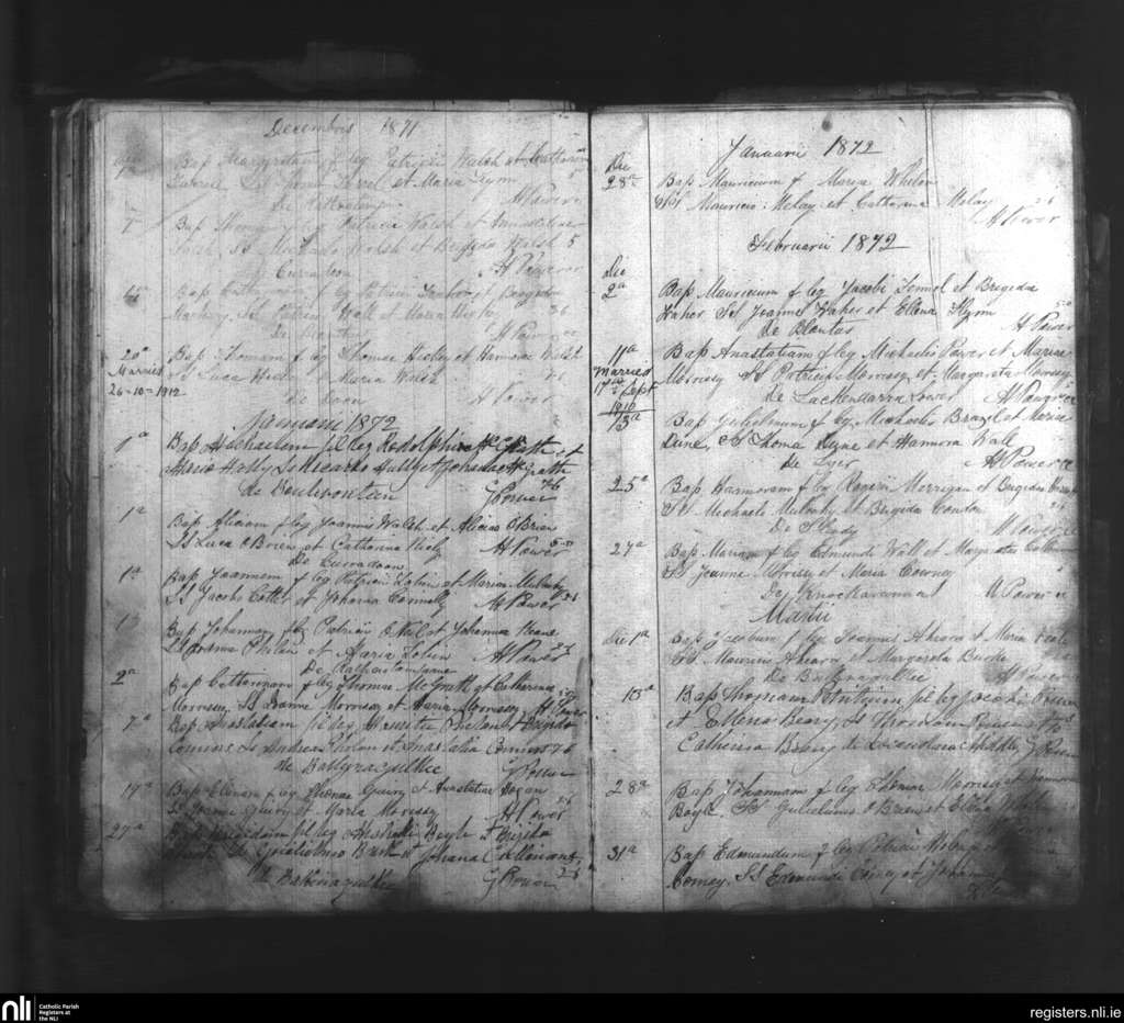 Touraneena; County of Waterford; Diocese of Waterford and Lismore. Baptisms, Dec. 1871 to Mar. 1872