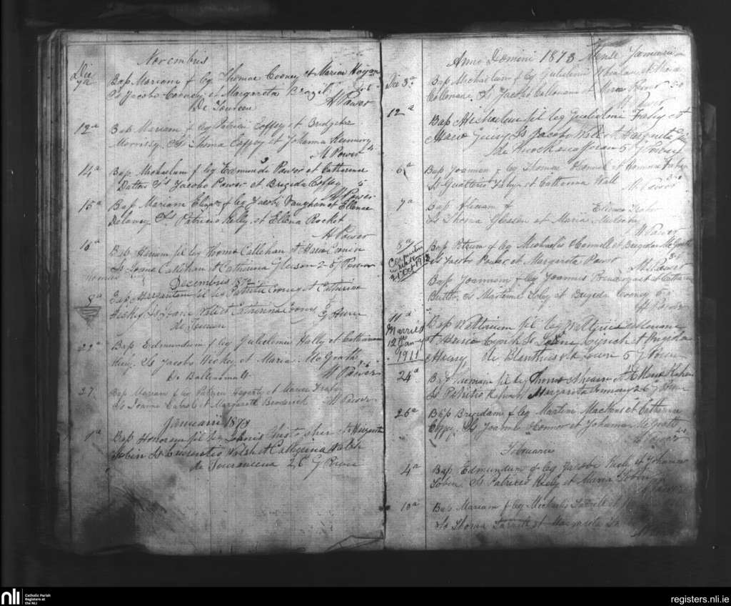 Touraneena; County of Waterford; Diocese of Waterford and Lismore. Baptisms, Nov. 1872 to Feb. 1873
