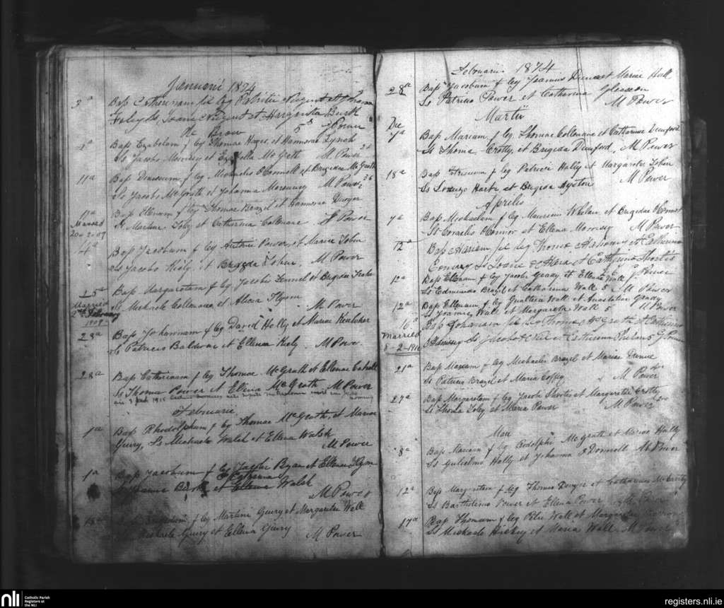 Touraneena; County of Waterford; Diocese of Waterford and Lismore. Baptisms, Jan. 1874 to May 1874