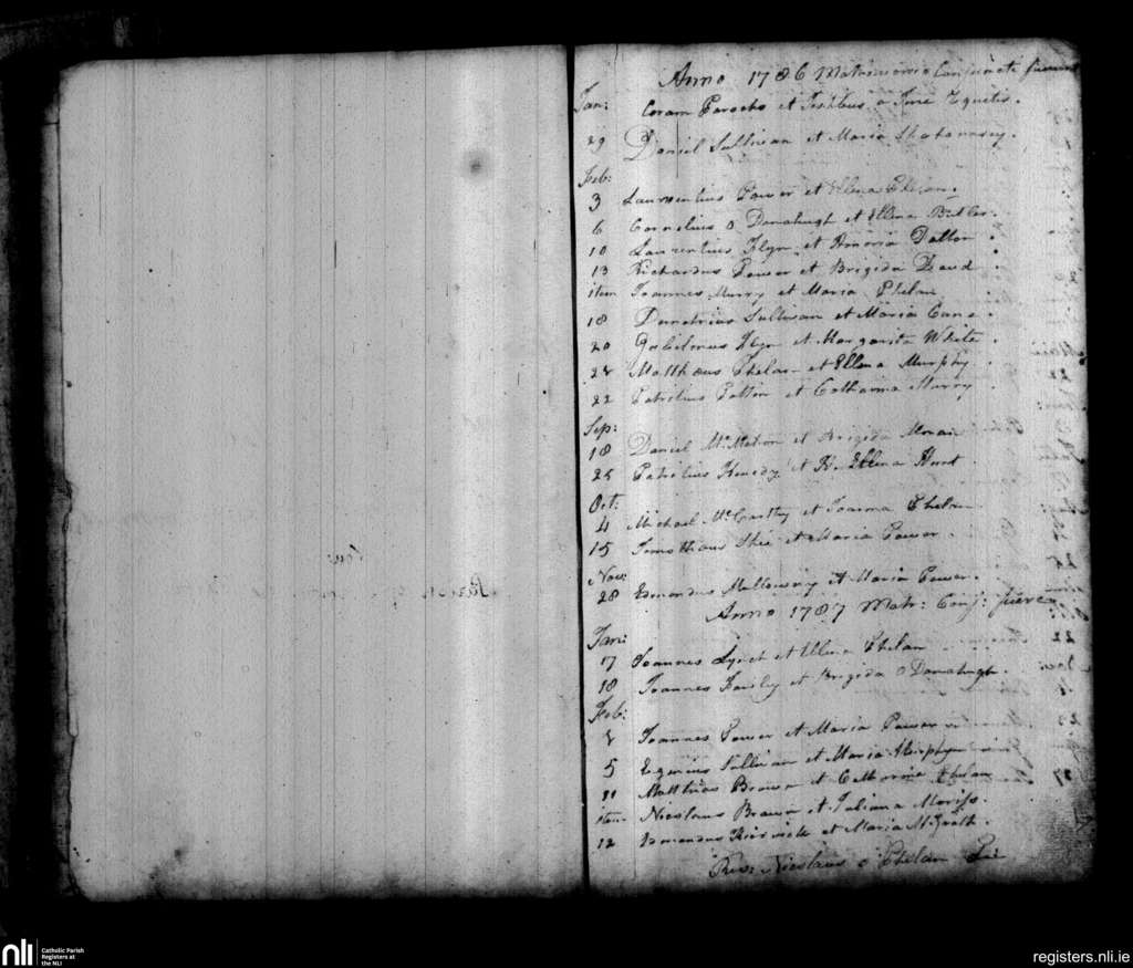 Tramore; County of Waterford; Diocese of Waterford and Lismore. Marriages, Jan. 1786 to Feb. 1787