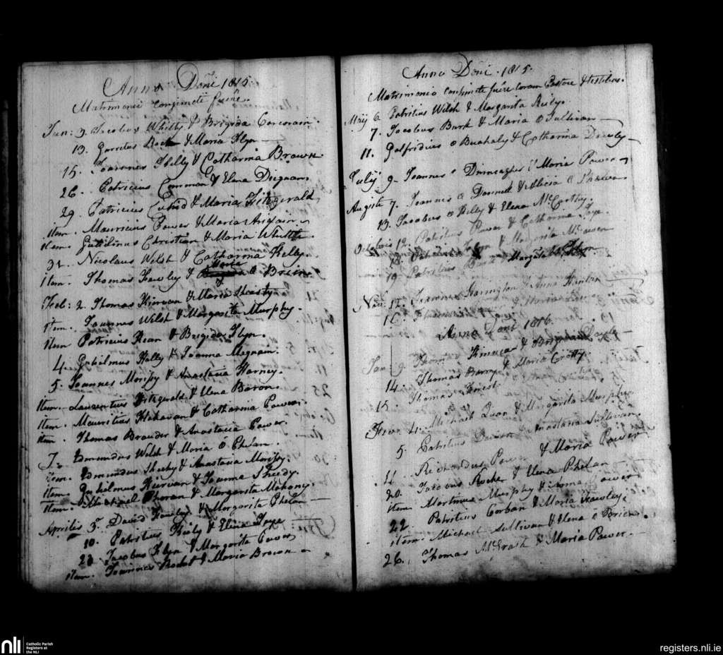 Tramore; County of Waterford; Diocese of Waterford and Lismore. Marriages, Jan. 1815 to Feb. 1816