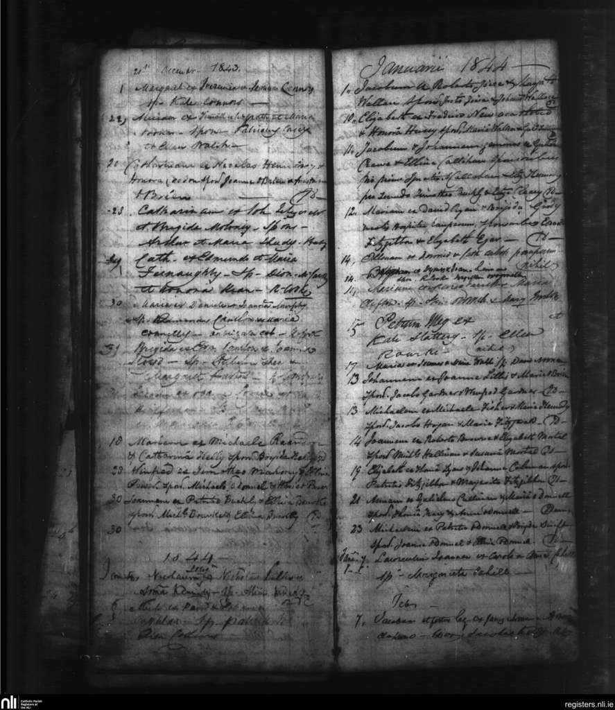 Kilmallock; County of Limerick, Cork; Diocese of Limerick. Baptisms, Dec. 1843 to Feb. 1844