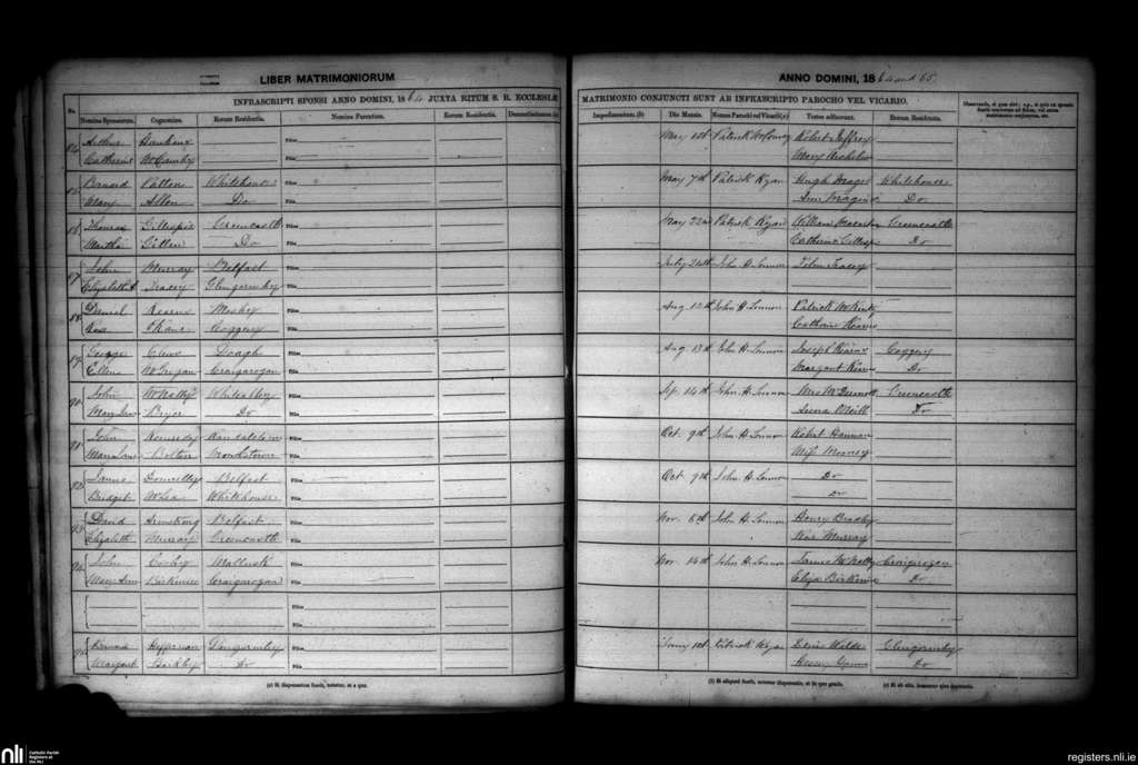 Greencastle; County of Antrim; Diocese of Down and Connor. Marriages, May 1864 to Jan. 1865